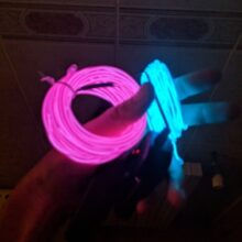 Our neon cable, like neon lights, offers 360 degrees of illumination. It comes in various colors, can be easily bent into any shape and cut to any length. They are powered by a power pack that normally uses two AA batteries. The power pack is lightweight and can be easily hidden in a pocket if you are using the wires on a light-up costume. Depending on the circuitry on the power pack, the pack may support various lighting modes and different speeds of flashing effects. If you’re experienced with electronics, you can further enhance the lighting abilities of this cord to sync with music and beats.
