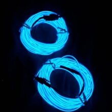 Our neon cable, like neon lights, offers 360 degrees of illumination. It comes in various colors, can be easily bent into any shape and cut to any length. They are powered by a power pack that normally uses two AA batteries. The power pack is lightweight and can be easily hidden in a pocket if you are using the wires on a light-up costume. Depending on the circuitry on the power pack, the pack may support various lighting modes and different speeds of flashing effects. If you’re experienced with electronics, you can further enhance the lighting abilities of this cord to sync with music and beats.